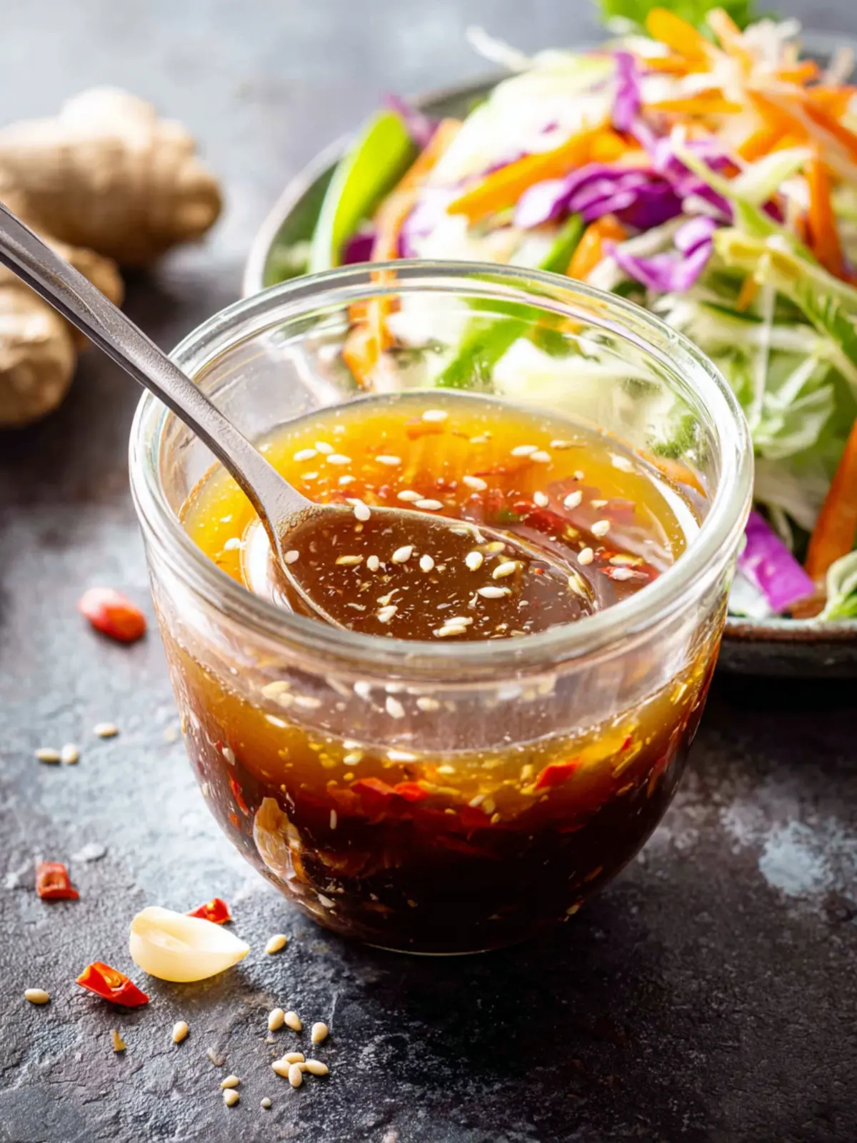 Ginger and Garlic: Freshly minced ginger and garlic deliver a punch of flavor. They’re not just aromatics; they’re the heart of this dressing, infusing each bite with zest.