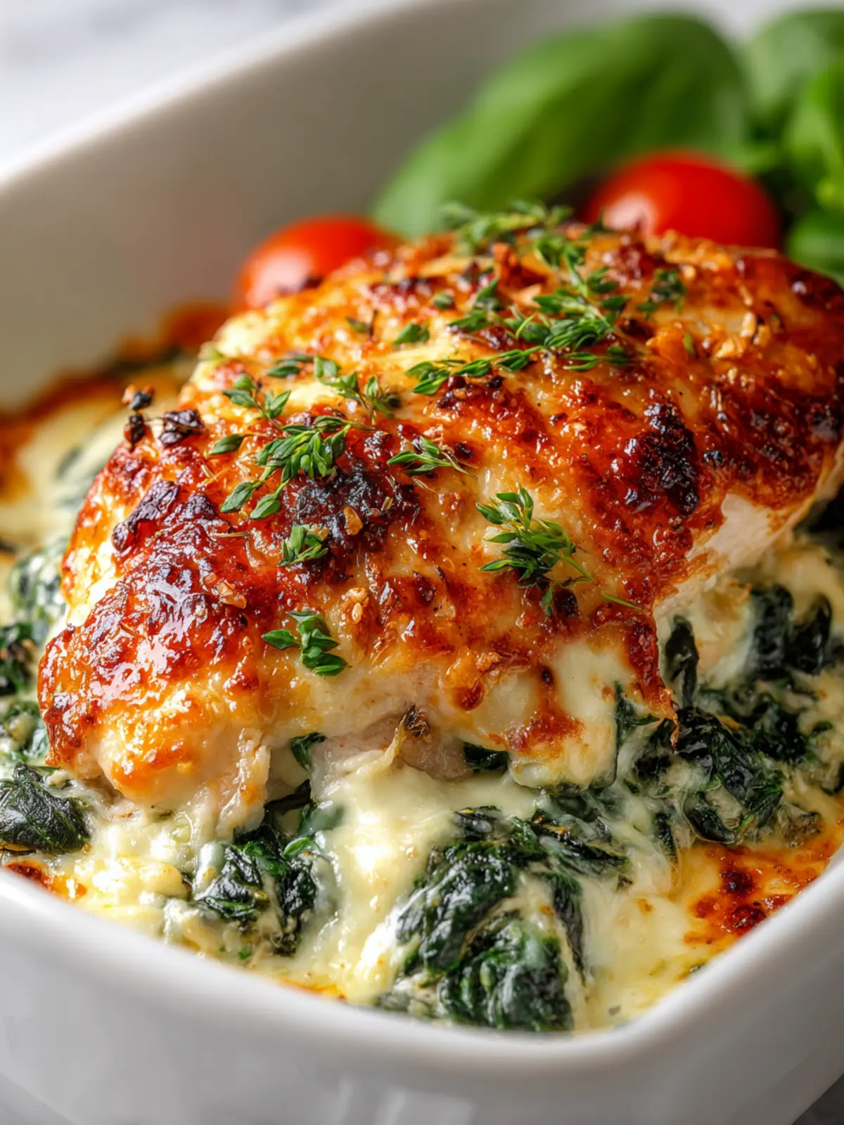 To create an inviting dining atmosphere, serve the baked chicken spinach casserole directly from a beautiful baking dish, garnishing it with fresh herbs like parsley or basil. Alternatively, portion it into individual ramekins for a more formal setting. Pair with colorful dinnerware to make the meal pop visually.