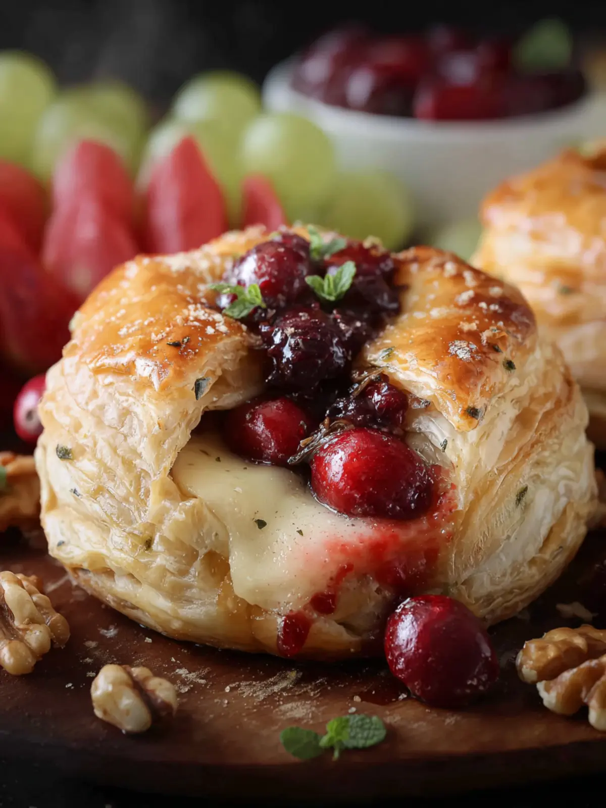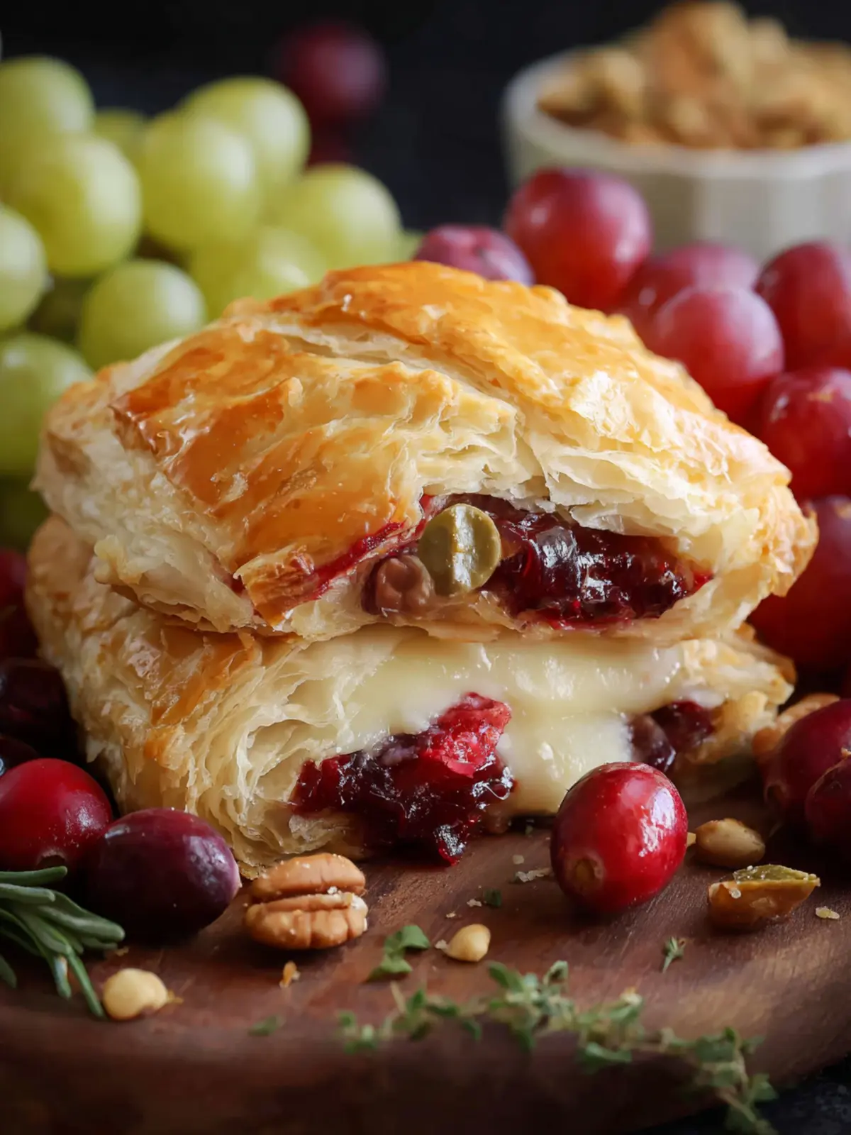 Impressive Presentation: As it bakes, the pastry puffs up, creating a rustic yet elegant look that’s sure to impress your guests. The golden crust is irresistible, and the moment it’s sliced open, the gooey cheese spills out alongside vibrant cranberry sauce. It’s a feast for the eyes and the stomach!