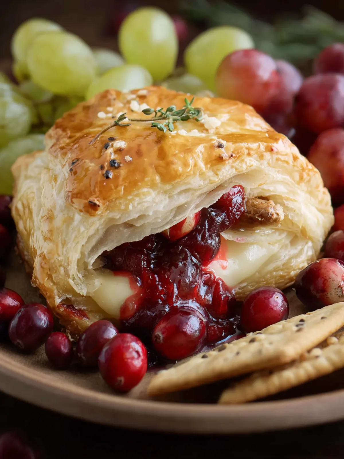 - Crispy crackers or toasted baguette slices: Serve your puff pastry with an array of crackers or toasted bread for some crunch. This contrast enhances the creamy brie and tart cranberries.