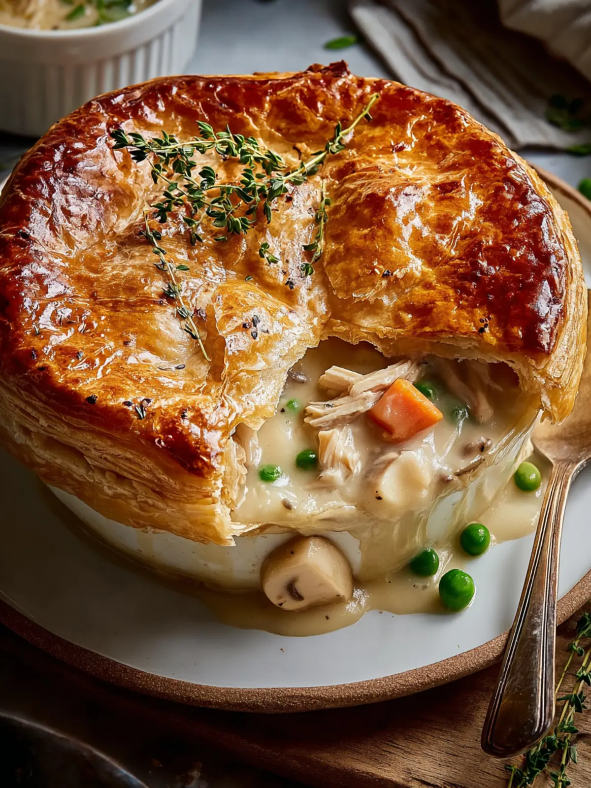 • Savory Puff Pastry: Consider using puff pastry instead of a traditional pie crust for an airy, flaky topping that still holds up to the creamy filling beneath.