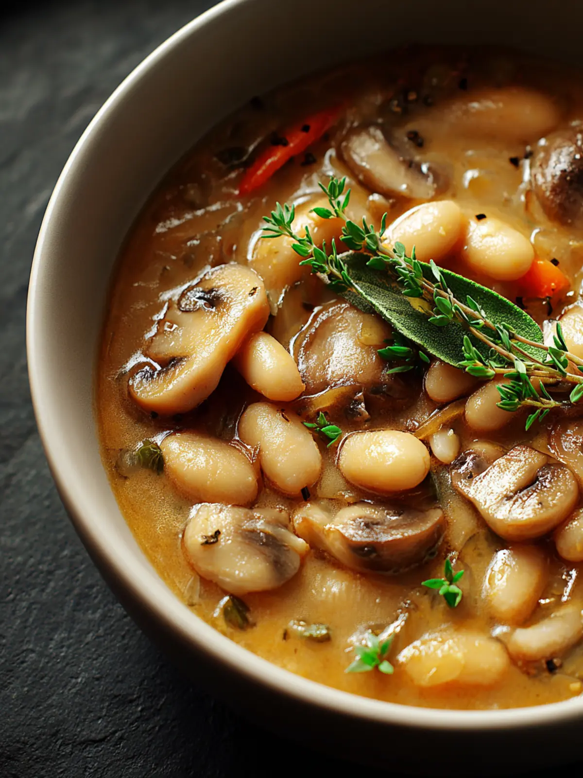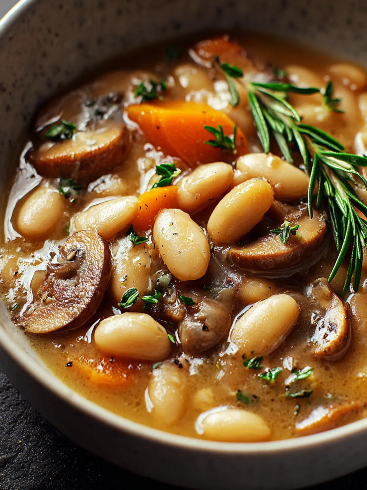 A hearty and nutritious white bean and mushroom soup, perfect for a cozy meal.