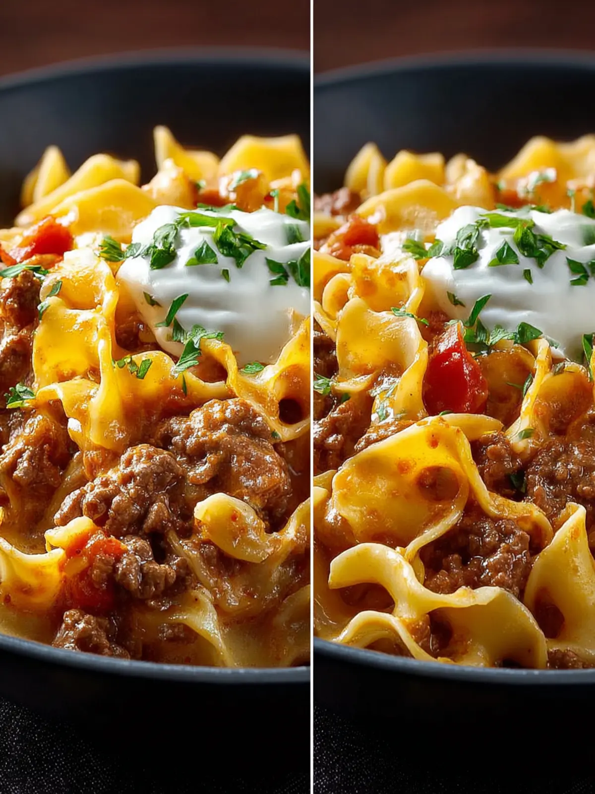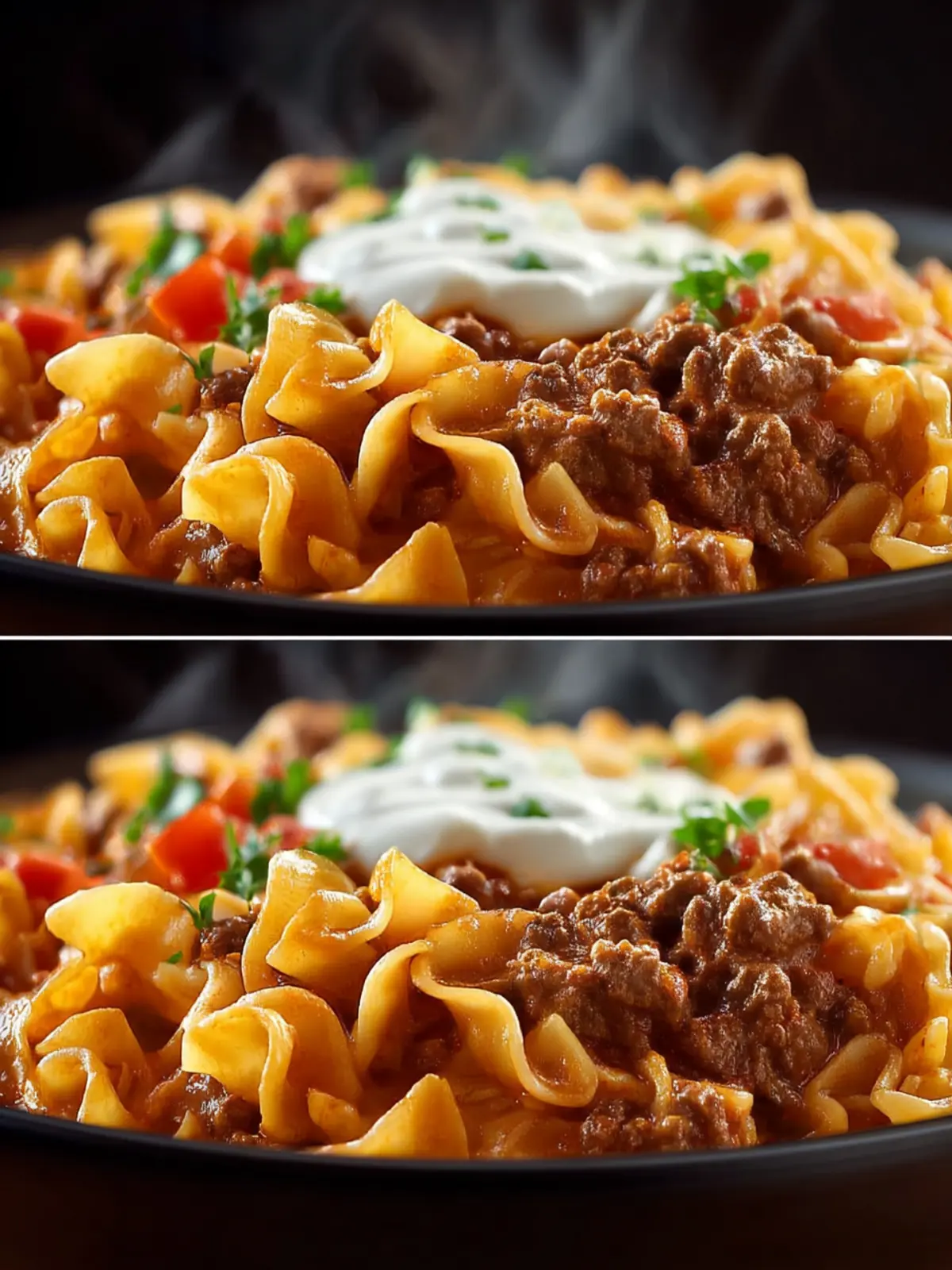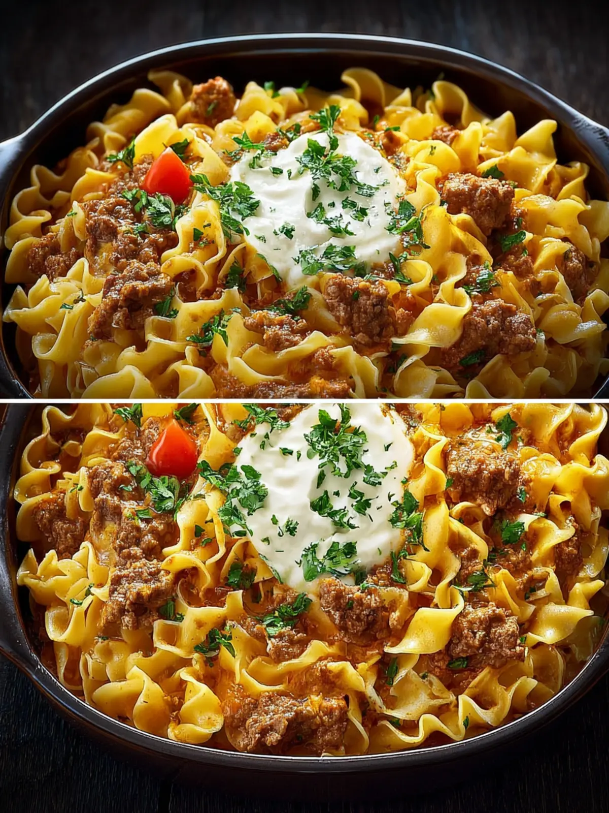 Sour Cream Topping: A dollop of sour cream on top can enhance the flavors further, giving an extra creamy texture that complements the beef and noodles.