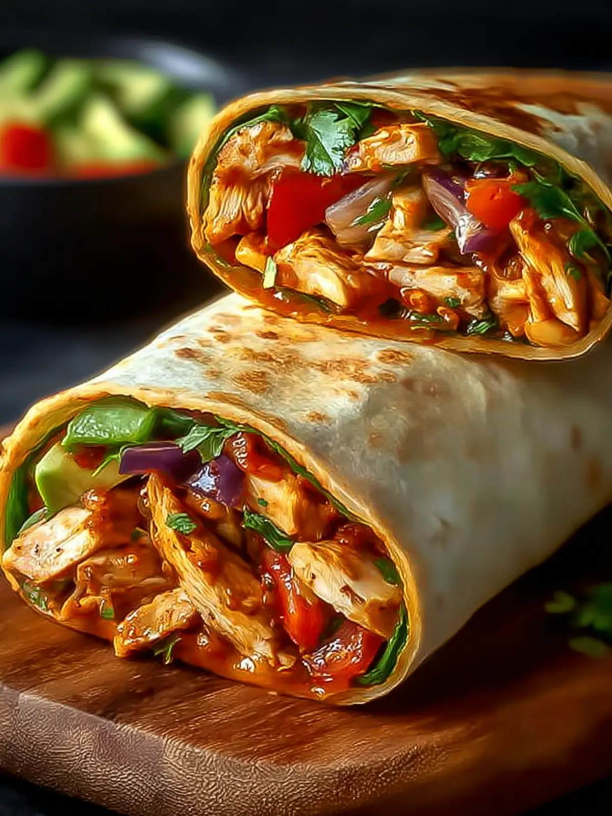 Delicious wraps filled with grilled chipotle chicken, sautéed vegetables, and cheese, perfect for a quick meal!