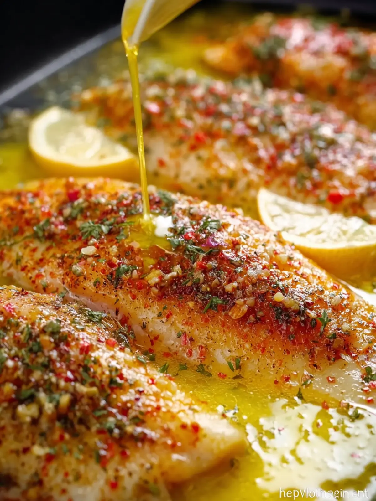- Spoon the garlic butter mixture evenly over the tilapia fillets, ensuring they are well coated.