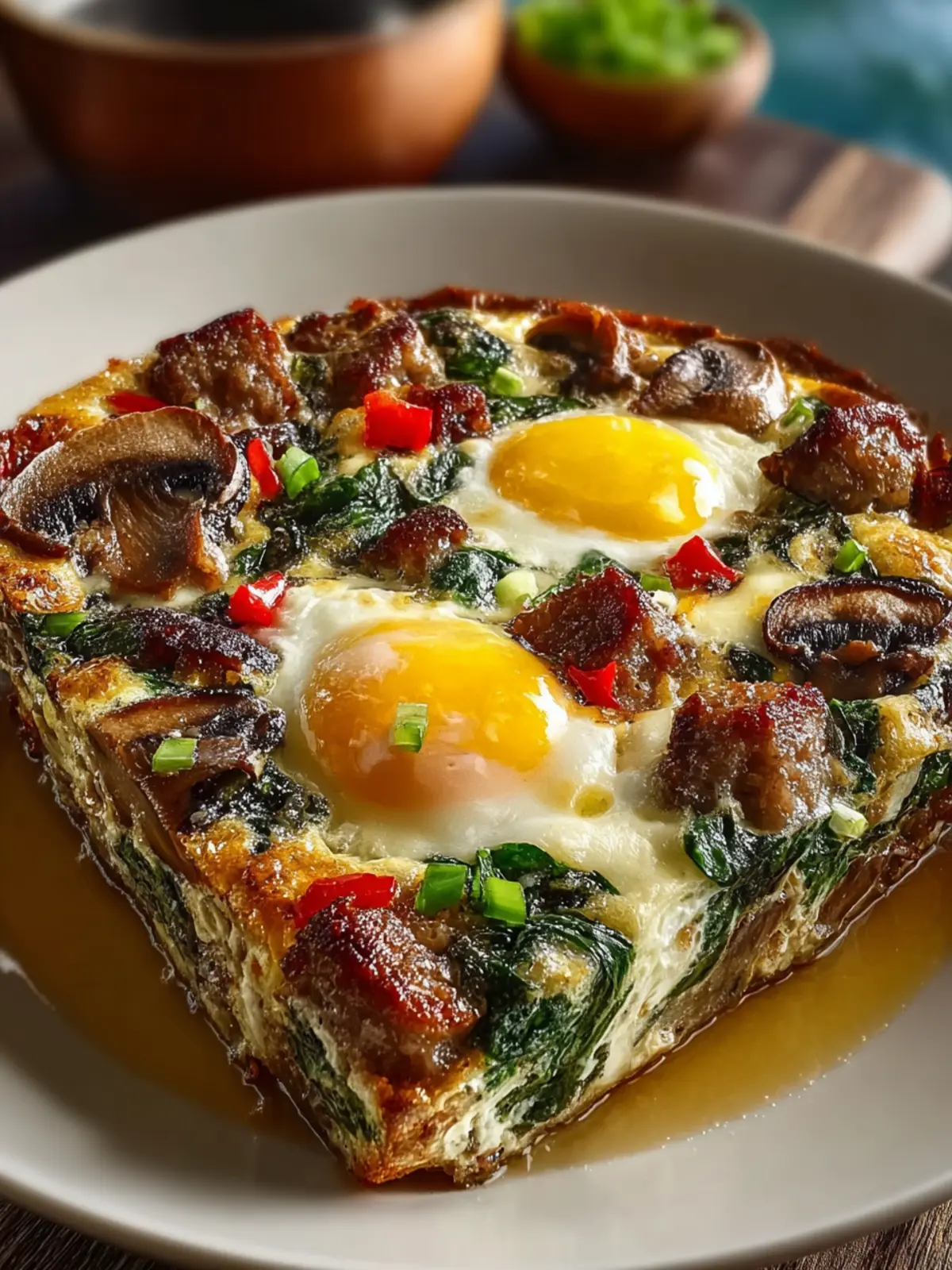 Hearty Sausage Spinach Mushroom Egg Bake for Cozy Mornings
