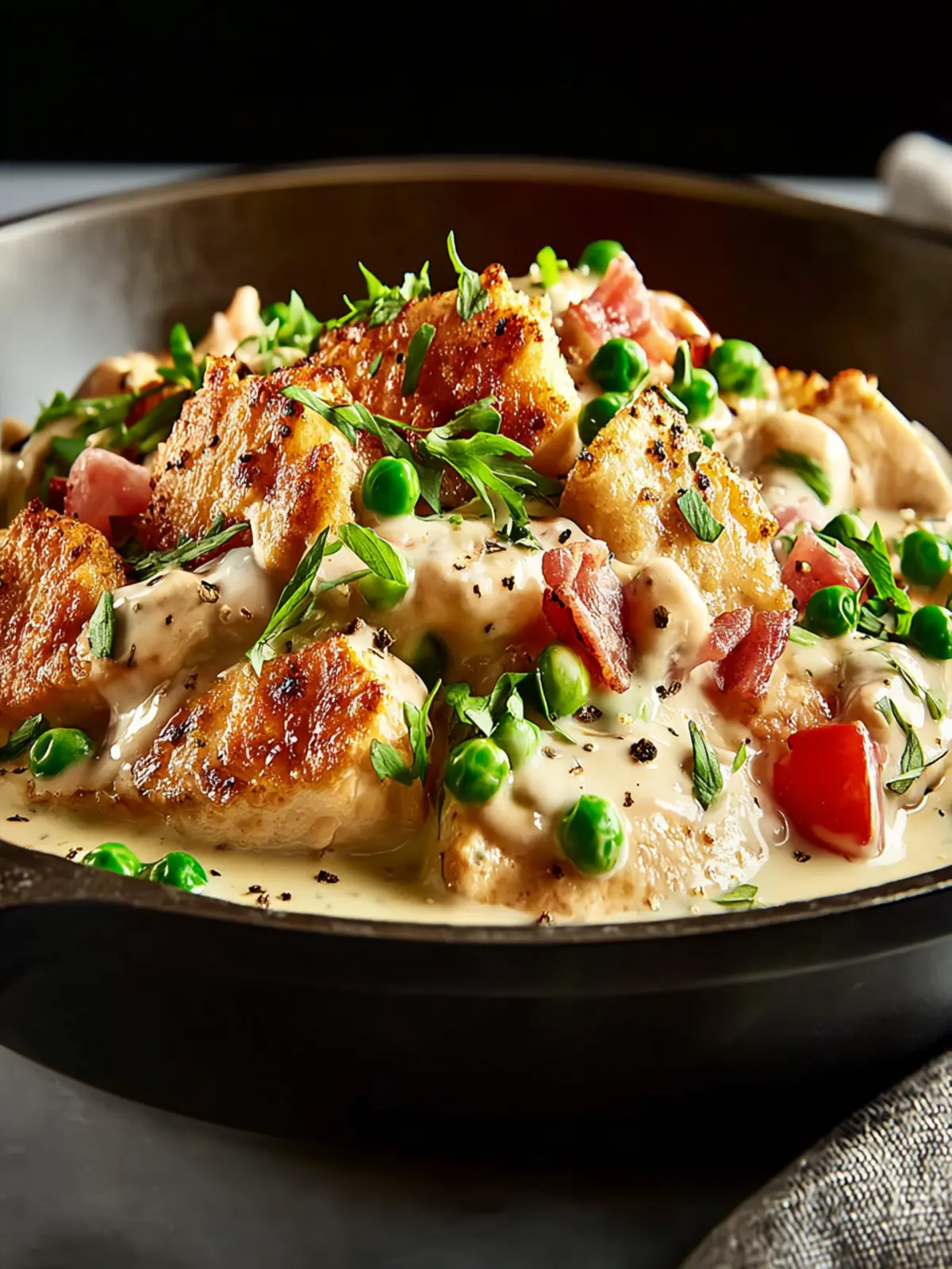 Cream Sauce: A combination of heavy cream, chicken broth, and seasoning unites everything. The richness of the cream balances the freshness of the vegetables, creating a luxuriously smooth sauce that coats the chicken perfectly.