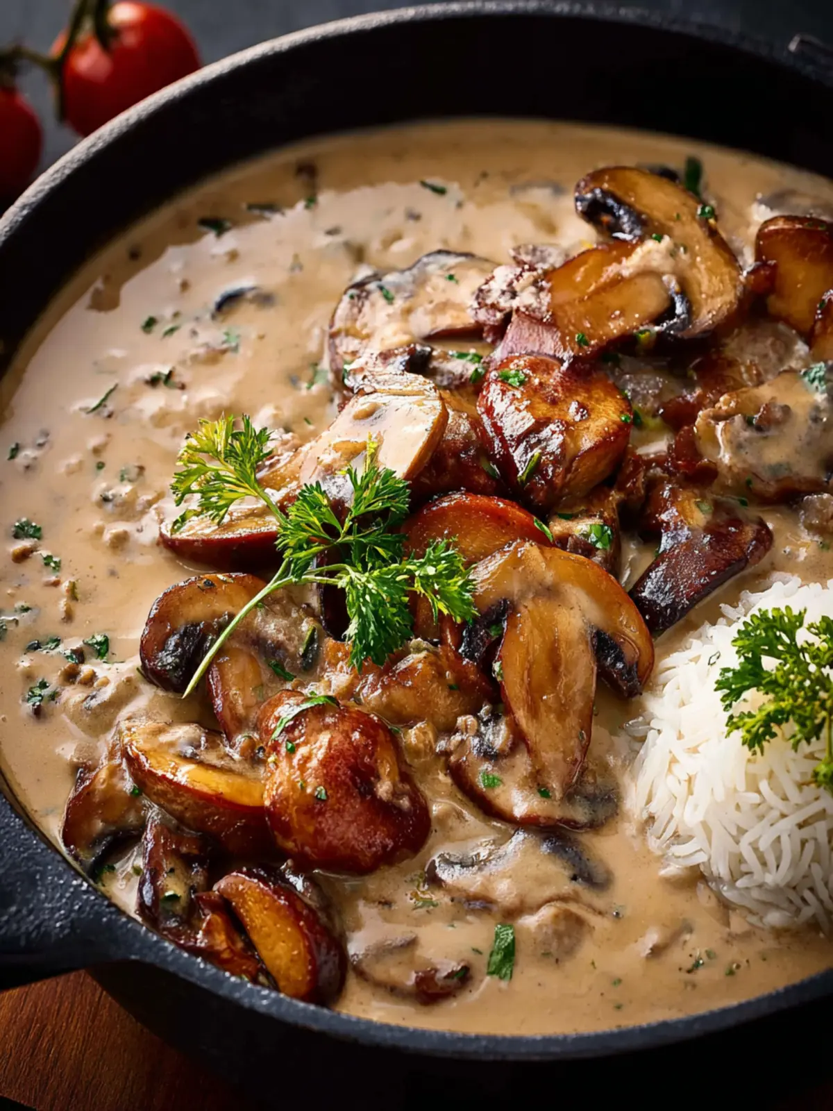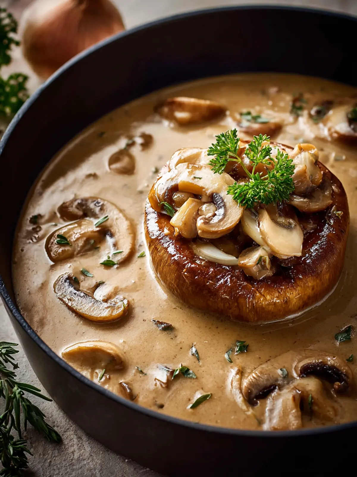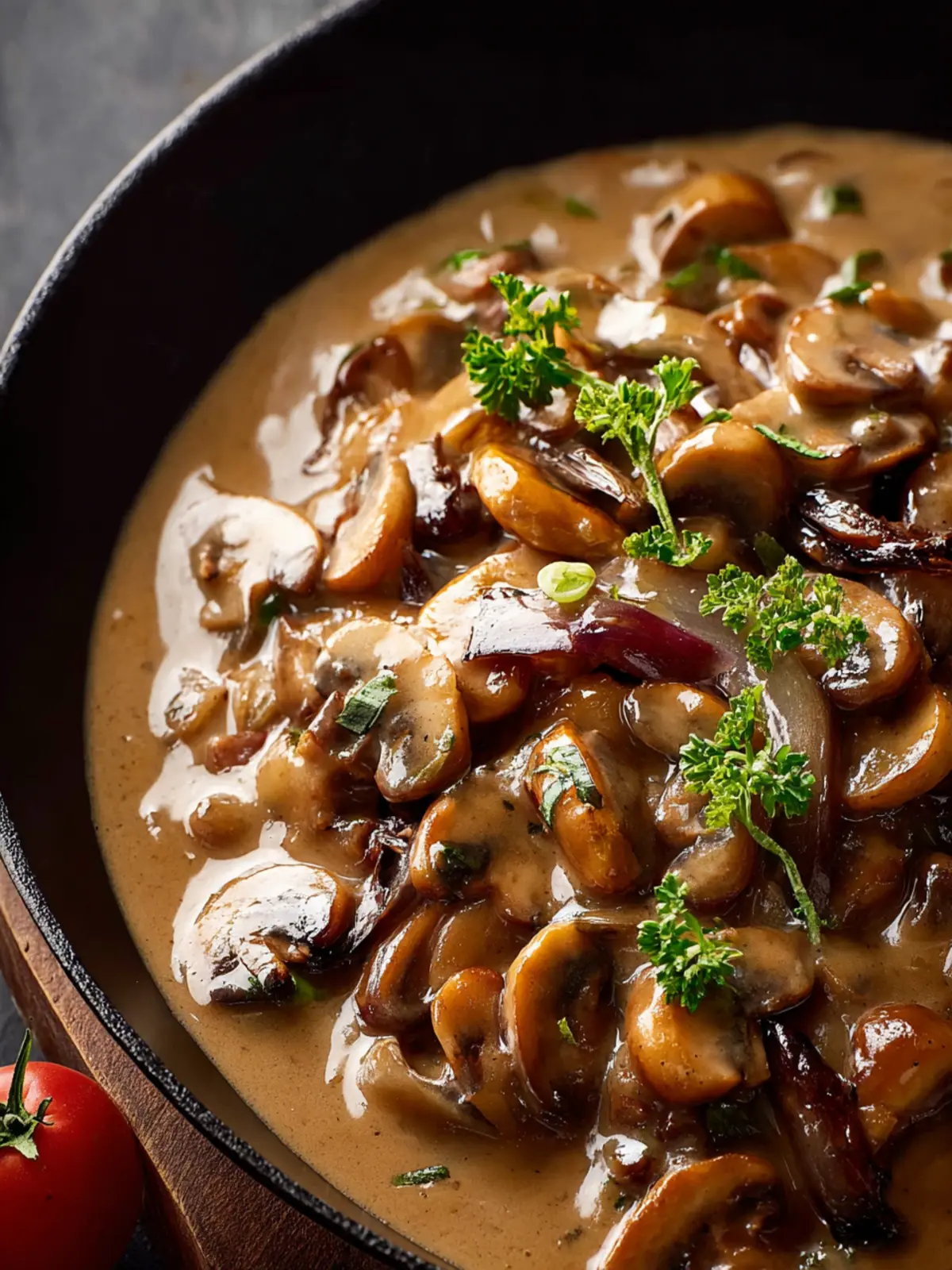 A rich and creamy mushroom gravy perfect for serving over mashed potatoes or grilled meats.