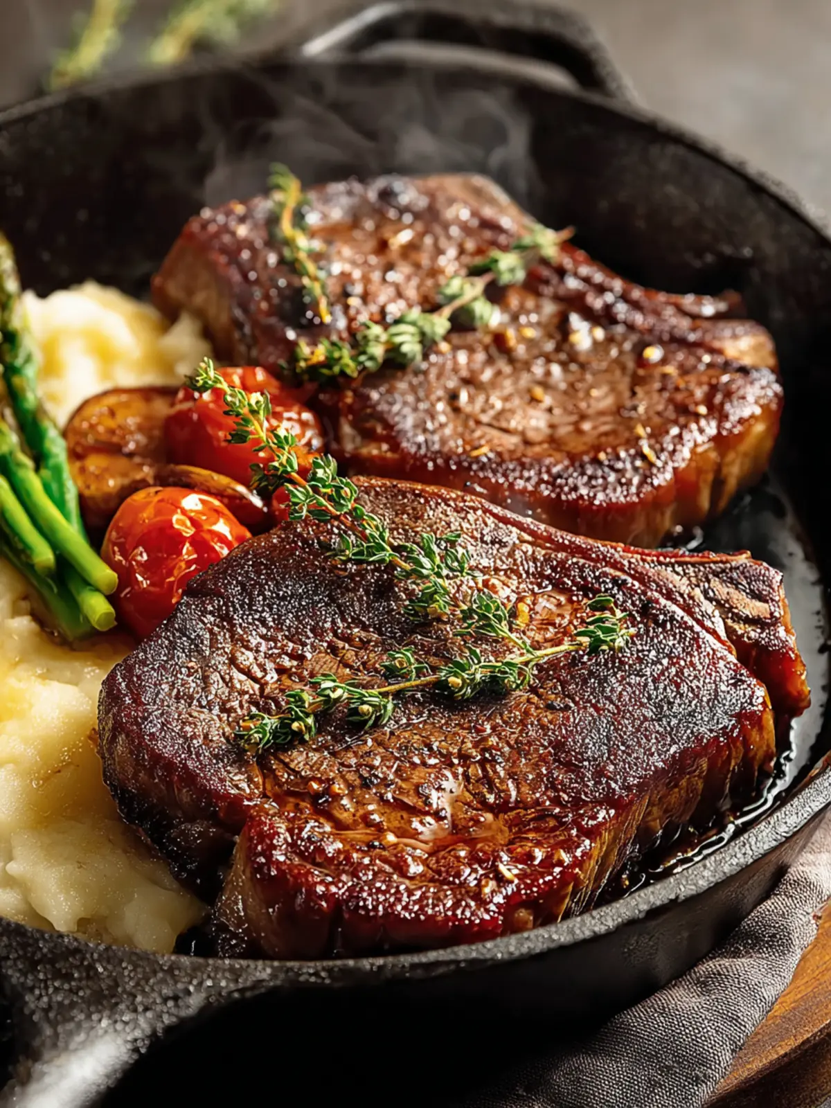 Ribeye Steak: Selecting a ribeye steak is a game-changer for our sizzling stovetop steak. This cut boasts a perfect balance of tenderness and rich flavor. When choosing your ribeye, look for one that’s well-marbled; those little flecks of fat melt during cooking, ensuring each bite is juicy and satisfying.