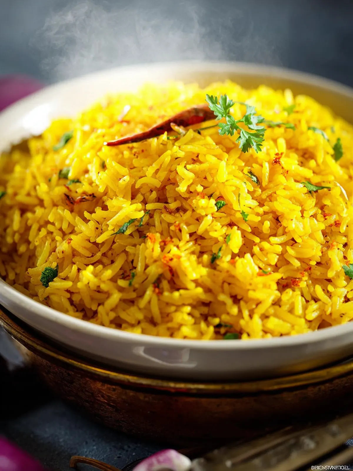 This turmeric rice is a fragrant and colorful side dish, perfect for pairing with various meals.