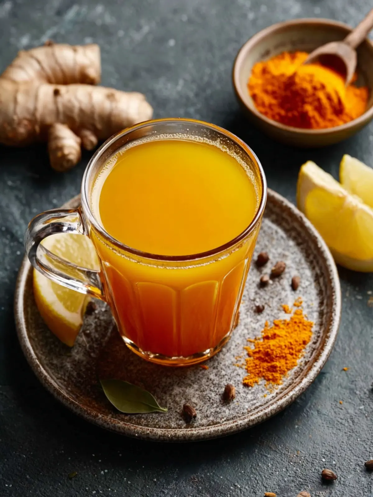 A soothing and flavorful turmeric ginger tea that can be enjoyed hot.